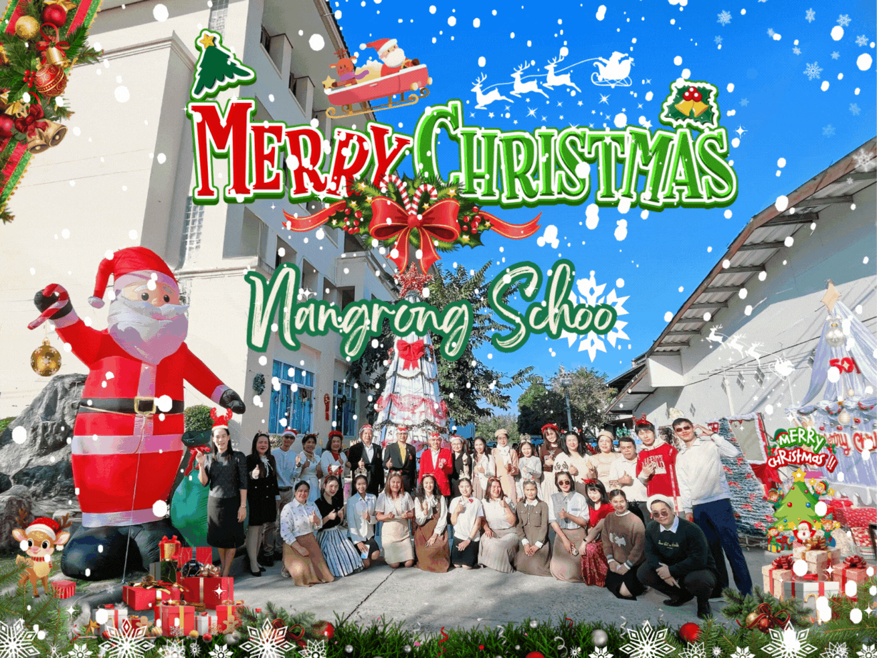 นำโดยนางรัสรินทร์ ธนโชติกิติพัฒน์ หัวหน้ากลุ่มสาระฯ พร้อมด้วยคณะครูกลุ่มสาระฯ แจกการ์ดเชิญร่วมกิจกรรมวันคริสต์มาส ในวันที่ 25 ธันวาคม 2568