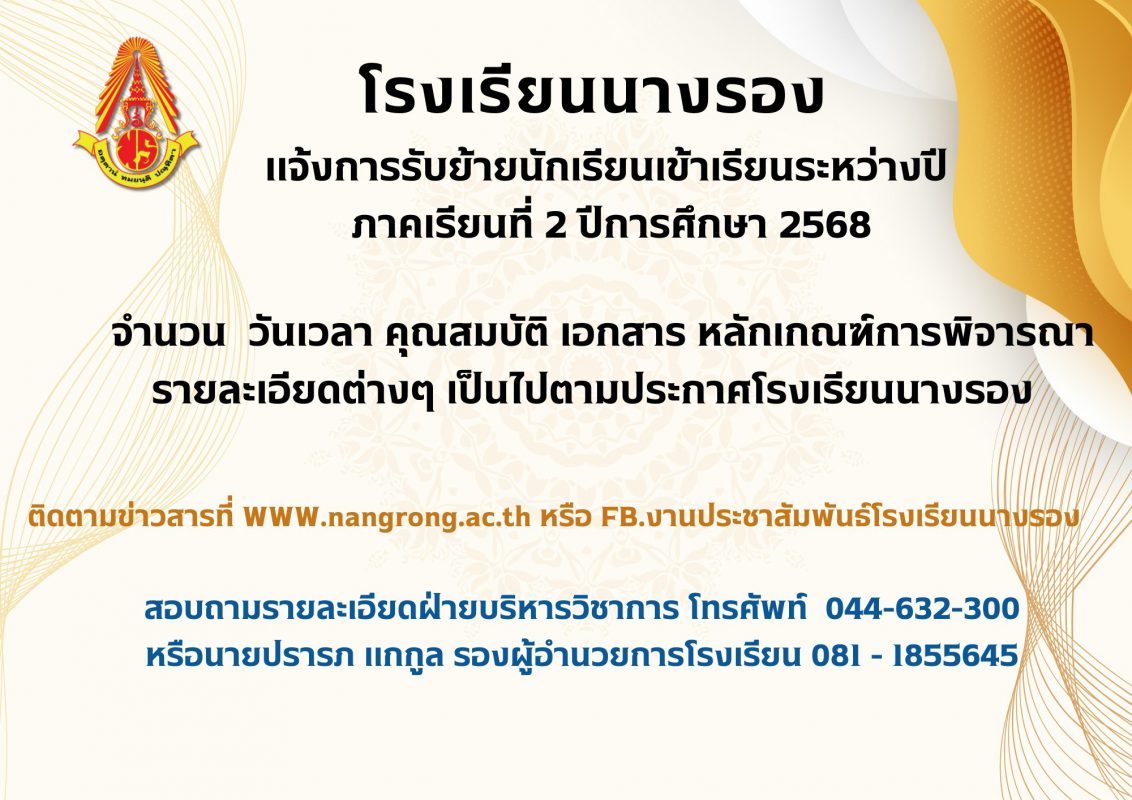 ไม่มีหมวดหมู่ การรับย้ายเข้าเรียนระหว่างปี ภาคเรียนที่ 2 ปีการศึกษา 2568 Posted on 1 ตุลาคม 20251 ตุลาคม 2025 by อัคร ศรีเมือง 01 ต.ค. อัคร ศรีเมือง เมื่อถึงกาลเวลา….วางปากกา ….อำลาชีวิตข้าราชการ