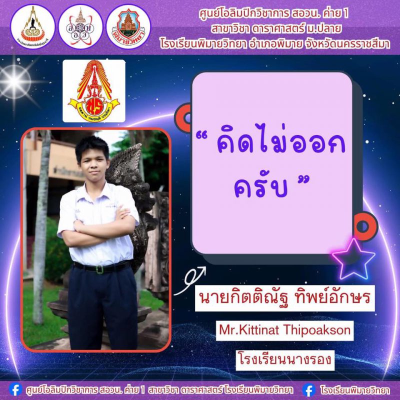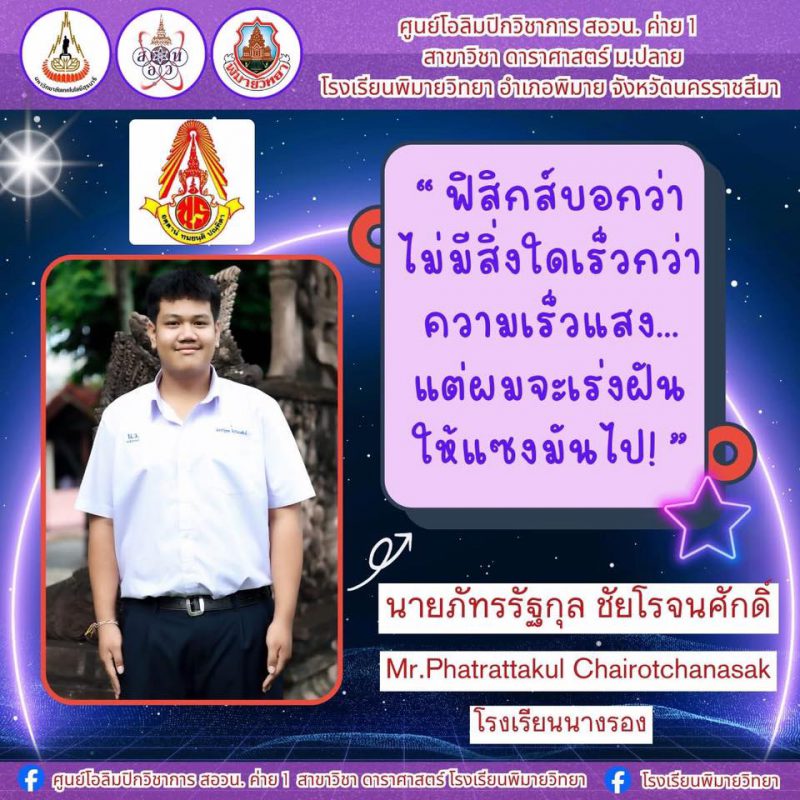 ไม่มีหมวดหมู่ ขอแสดงความยินดีกับนักเรียนที่ผ่านการอบรมโครงการโอลิมปิกวิชาการ ค่าย 1 วิชาดาราศาสตร์ Posted on 28 ตุลาคม 202529 ตุลาคม 2025 by อัคร ศรีเมือง 28 ต.ค. ค่ายโอลิมปิกวิชาการ (สอวน.) ค่าย 1 ปี 2568 💫วิชาดาราศาสตร์ โรงเรียนพิมายวิทยา 💫 ✨ระดับชั้น ม.ปลาย ระหว่างวันที่ 13 – 24 ตุลาคม 2568✨ ♦️นักเรียนที่ผ่านการอบรม 2 คน คือ 🌟1.นายกิตติณัฐ ทิพย์อักษร ม.3/12 🌟2.นายภัทรรัฐกุล ชัยโรจนศักดิ์ ม.4/12 อัคร ศรีเมือง พระผู้เสด็จสู่สวรรคาลัย