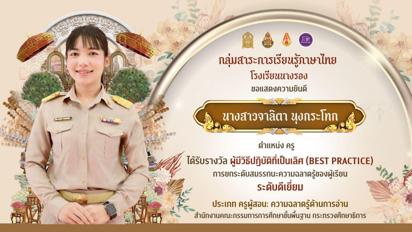 โรงเรียนนางรอง ขอแสดงความยินดีและภาคภูมิใจเป็นอย่างยิ่ง กับ คุณครูจาลิตา นุงกระโทก