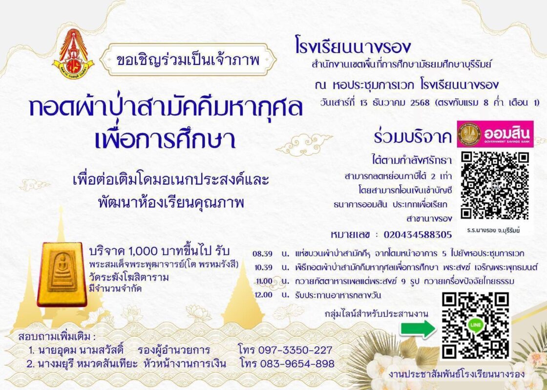 ข่าวสารในโรงเรียน ผ้าป่าสามัคคีมหากุศลเพื่อการศึกษา เพื่อต่อเติมโดมอเนกประสงค์และพัฒนาห้องเรียนคุณภาพ Posted on พฤศจิกายน 27, 2025 by admin 27 พ.ย. 🙏ขอขอบคุณศิษย์เก่า ผู้ปกครองและผู้ใหญ่ใจดีทุกท่าน🙏 📍เชิ […] Continue reading →