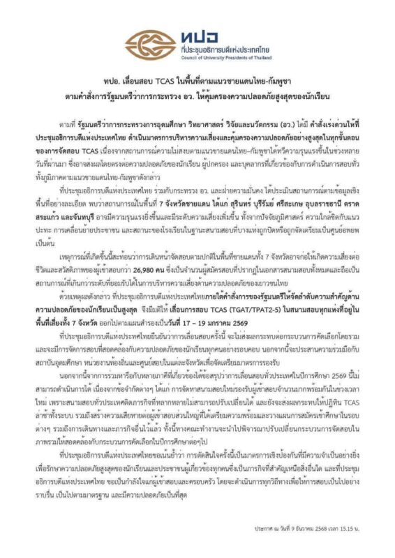 การเลื่อนการสอบ TCAS