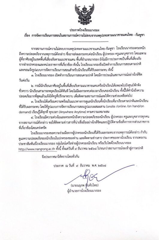 ข่าวสารในโรงเรียน การจัดการเรียนการสอนในสถานการณ์ไม่สงบจากเหตุปะทะตามแนวชายแดนไทย -กัมพูชา Posted on ธันวาคม 10, 2025ธันวาคม 10, 2025 by admin 10 ธ.ค. admin การเลื่อนการสอบ TCAS แจ้งการปิดเรียนกรณีพิเศษและจัดการเรียนการสอนชดเชย (เพิ่มเติม)