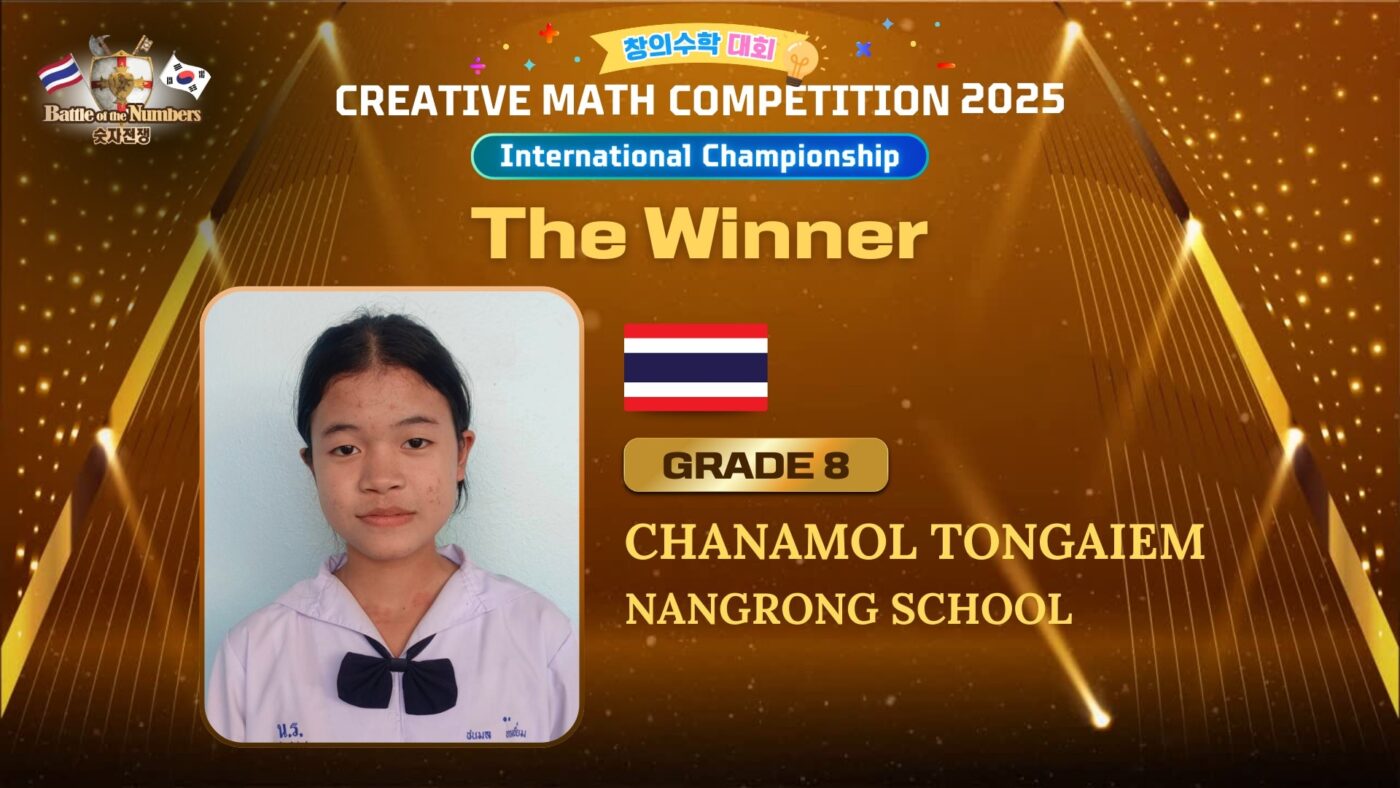 🏆ได้รับรางวัลชนะเลิศในการแข่งขัน Creative Math Competition รอบ International Championship ระดับชั้นมัธยมศึกษาปีที่ 2