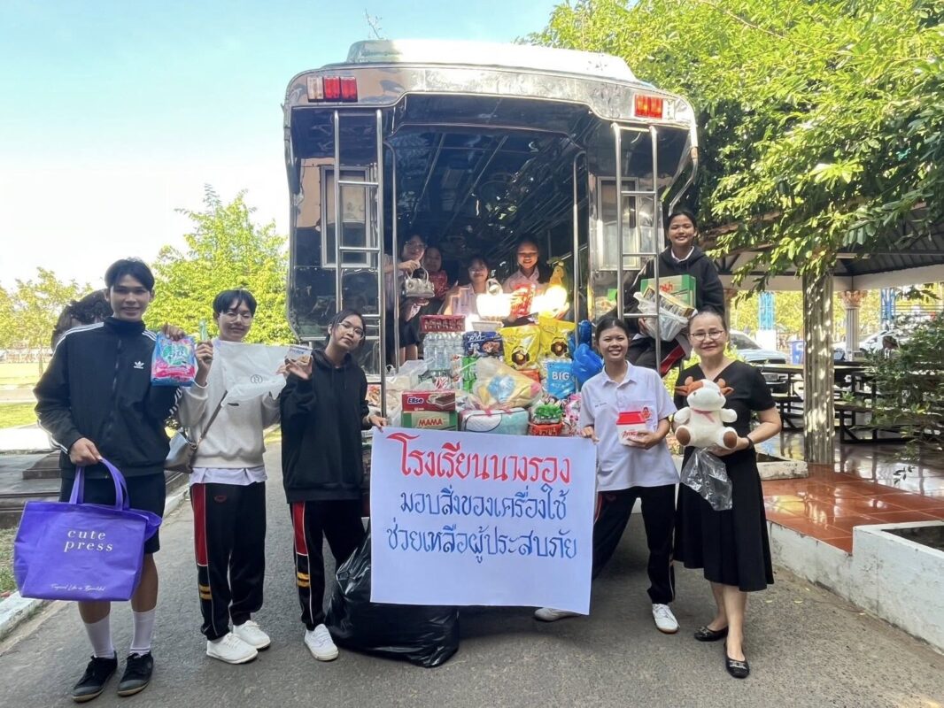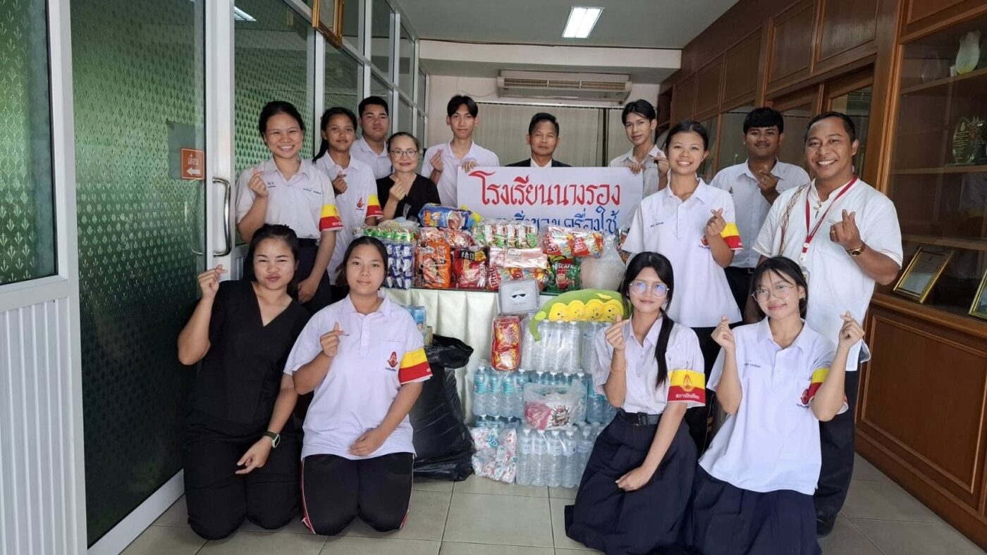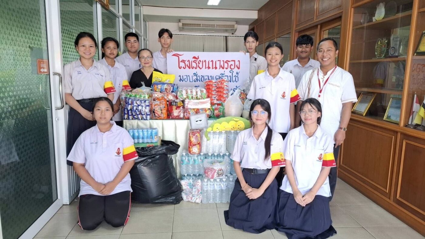 ข่าวสารในโรงเรียน มอบให้แก่ผู้ประสบเหตุความไม่ปลอดภัยจากเหตุปะทะตามแนวชายแดนไทย-กัมพูชา Posted on ธันวาคม 19, 2025ธันวาคม 22, 2025 by admin 19 ธ.ค. โรงเรียนนางรอง ส่งต่อความห่วงใย ช่วยเหลือผู้ประสบเหตุแนวชายแดน วันที่ 19 ธันวาคม 2568 นางสาวปาริชาติ สุดตาชาติ รองผู้อำนวยการโรงเรียน พร้อมคณะครูและสมาชิกสภานักเรียน ร่วมมอบสิ่งของอุปโภคบริโภคที่ได้รับจากการร่วมใจบริจาคของชาวเหลืองแดง ให้แก่กลุ่มส่งเสริมการจัดการศึกษา สพม.บุรีรัมย์ เพื่อส่งต่อกำลังใจและปัจจัยสี่ไปยังผู้ประสบเหตุความไม่ปลอดภัยจากเหตุปะทะตามแนวชายแดนไทย-กัมพูชา กิจกรรมในครั้งนี้สะท้อนถึงพลังความสามัคคีและจิตสาธารณะของบุคลากรและนักเรียนโรงเรียนนางรองที่พร้อมยืนหยัดเคียงข้างสังคมในทุกสถานการณ์ admin โรงเรียนนางรอง ขอกราบขอบพระคุณและอนุโมทนาบุญกับผู้มีจิตศรัทธาทุกท่าน