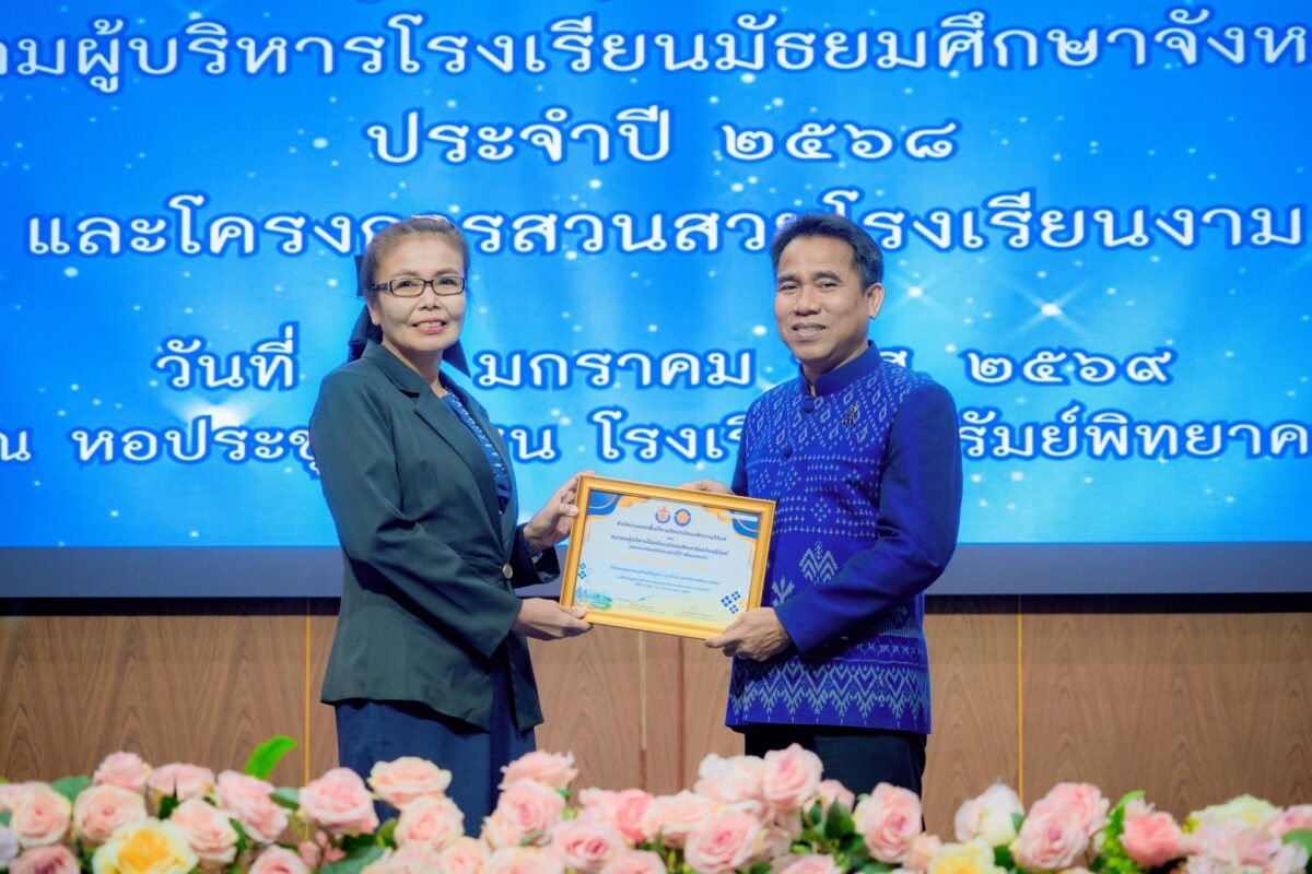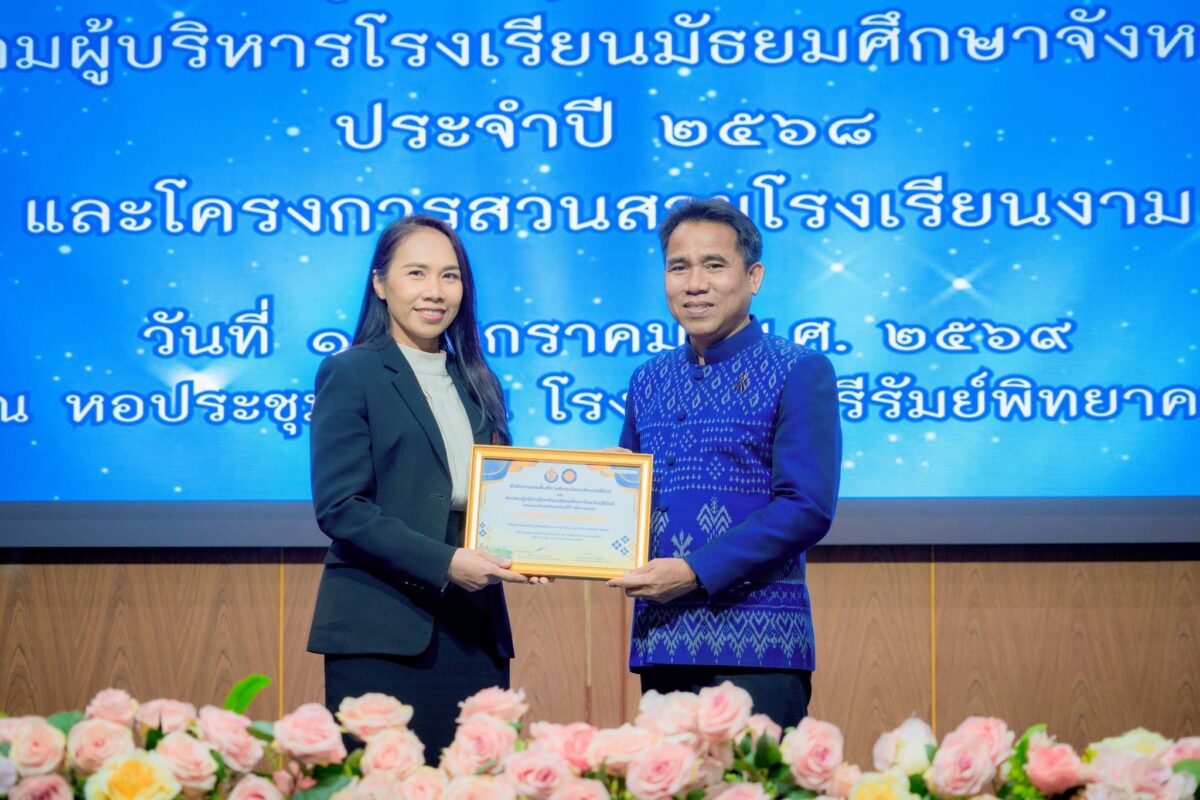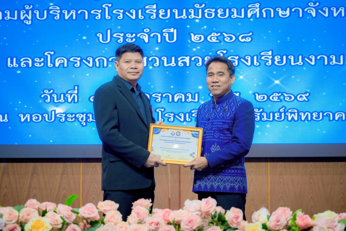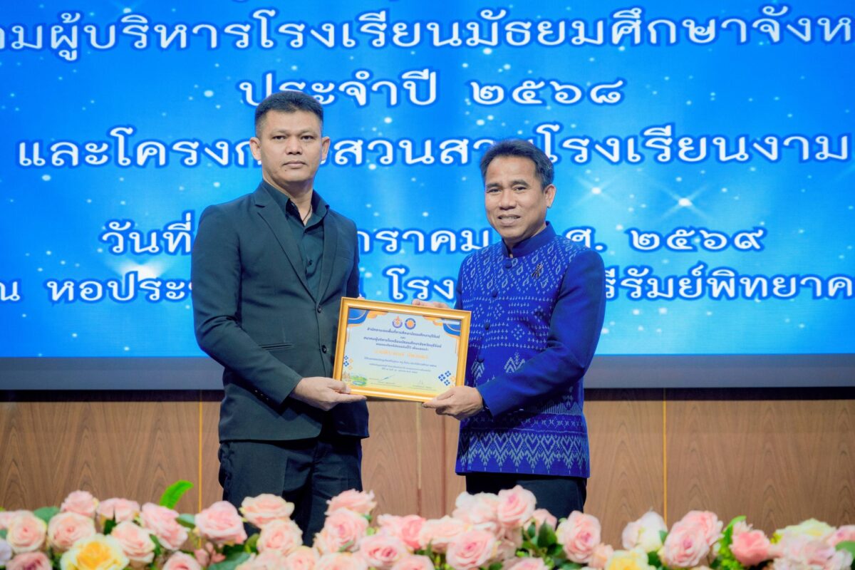 ข่าวสารในโรงเรียน รางวัลเชิดชูเกียรติข้าราชการครูและบุคลากรทางการศึกษา ประจำปี 2568 Posted on มกราคม 11, 2026มกราคม 15, 2026 by admin 11 ม.ค. เมื่อวันที่ 10 มกราคม 2569 สมาคมผู้บริหารโรงเรียนมัธยมศึกษาจังหวัดบุรีรัมย์ จัดพิธีมอบเกียรติบัตรในโครงการเชิดชูเกียรติข้าราชการครูและบุคลากรทางการศึกษา ประจำปี 2568 เพื่อเป็นการยกย่องสรรเสริญและประกาศเกียรติคุณแก่ผู้ที่มีผลงานดีเด่นและเป็นแบบอย่างที่ดีในการปฏิบัติงาน ในการนี้ ได้รับเกียรติจาก สิบตำรวจตรี ดร.นปดล นพเคราะห์ ผู้อำนวยการสำนักงานเขตพื้นที่การศึกษามัธยมศึกษาบุรีรัมย์ เป็นประธานในพิธีมอบเกียรติบัตรและกล่าวให้โอวาทแก่ผู้เข้ารับรางวัล เพื่อสร้างขวัญและกำลังใจในการปฏิบัติหน้าที่สืบไป ณ หอประชุมทิวสน โรงเรียนบุรีรัมย์พิทยาคม admin คำขวัญวันเด็กแห่งชาติ ปี 2569 การประกวดทูบีนัมเบอร์วันไอดอล รุ่นที่ 16 รอบคัดเลือกตัวแทนจังหวัดขอเชิญร่วมส่งแรงใจและร่วมเป็นกำลังใจให้แก่เยาวชนต้นแบบ TO BE NUMBER ONE IDOL โรงเรียนนางรองบุรีรัมย์