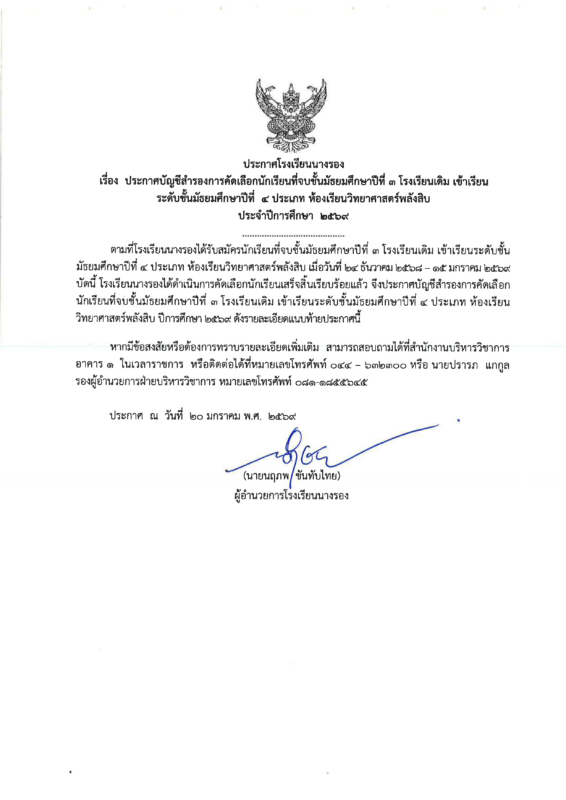 ข่าวสารในโรงเรียน ประกาศบัญชีสำรองการคัดเลือกนักเรียนที่จบชั้นมัธยมศึกษาปีที่ 3 โรงเรียนเดิม เข้าเรียนระดับชั้นมัธยมศึกษาปีที่ 4 ห้องเรียนวิทยาศาสตร์พลังสิบ ปีการศึกษา 2569 Posted on มกราคม 20, 2026มกราคม 23, 2026 by admin 20 ม.ค. admin ประกาศผลการคัดเลือกนักเรียนที่จบชั้นมัธยมศึกษาปีที่ 3 โรงเรียนเดิม เข้าเรียนระดับชั้นมัธยมศึกษาปีที่ 4 ห้องเรียนวิทยาศาสตร์พลังสิบ ปีการศึกษา 2569 ประกาศผลการคัดเลือกนักเรียนที่จบชั้นมัธยมศึกษาปีที่ 3 โรงเรียนเดิม เข้าเรียนระดับชั้นมัธยมศึกษาปีที่ 4 ห้องเรียนพิเศษ Intensive English Program (IEP) ปีการศึกษา 2569