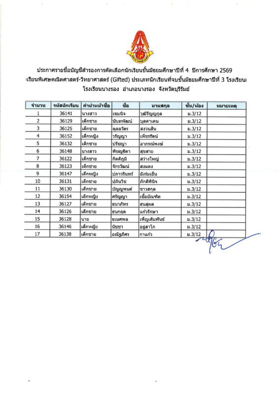 ข่าวสารในโรงเรียน ประกาศบัญชีสำรองการคัดเลือกนักเรียนที่จบชั้นมัธยมศึกษาปีที่ 3 โรงเรียนเดิม เข้าเรียนระดับชั้นมัธยมศึกษาปีที่ 4 ห้องเรียนพิเศษวิทยาศาสตร์-คณิตศาสตร์ ปีการศึกษา 2569 Posted on มกราคม 20, 2026มกราคม 23, 2026 by admin 20 ม.ค. admin ประกาศผลการคัดเลือกนักเรียนที่จบชั้นมัธยมศึกษาปีที่ 3 โรงเรียนเดิม เข้าเรียนระดับชั้นมัธยมศึกษาปีที่ 4 ห้องเรียนพิเศษวิทยาศาสตร์-คณิตศาสตร์ ปีการศึกษา 2569 ประกาศผลการคัดเลือกนักเรียนที่จบชั้นมัธยมศึกษาปีที่ 3 โรงเรียนเดิม เข้าเรียนระดับชั้นมัธยมศึกษาปีที่ 4 ห้องเรียนวิทยาศาสตร์พลังสิบ ปีการศึกษา 2569