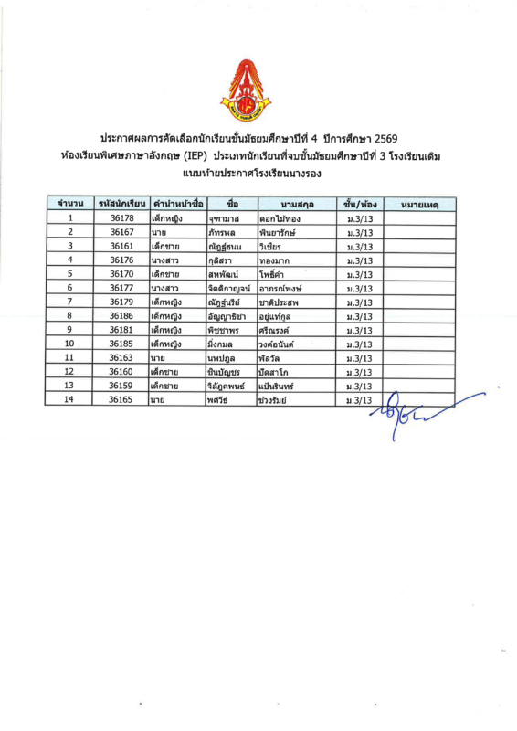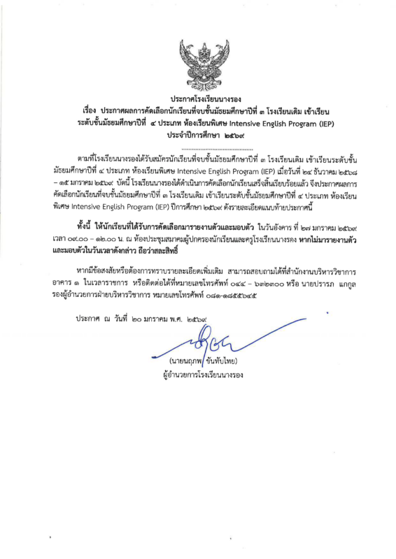 ข่าวสารในโรงเรียน ประกาศผลการคัดเลือกนักเรียนที่จบชั้นมัธยมศึกษาปีที่ 3 โรงเรียนเดิม เข้าเรียนระดับชั้นมัธยมศึกษาปีที่ 4 ห้องเรียนพิเศษ Intensive English Program (IEP) ปีการศึกษา 2569 Posted on มกราคม 20, 2026มกราคม 23, 2026 by admin 20 ม.ค. admin ประกาศบัญชีสำรองการคัดเลือกนักเรียนที่จบชั้นมัธยมศึกษาปีที่ 3 โรงเรียนเดิม เข้าเรียนระดับชั้นมัธยมศึกษาปีที่ 4 ห้องเรียนวิทยาศาสตร์พลังสิบ ปีการศึกษา 2569 เหล่ากาชาดจังหวัดบุรีรัมย์ ลงพื้นที่ตรวจเยี่ยมนักเรียนในพระราชานุเคราะห์ สมเด็จพระกนิษฐาธิราชเจ้า กรมสมเด็จพระเทพรัตนราชสุดาฯ สยามบรมราชกุมารี ประจำปีการศึกษา 2568
