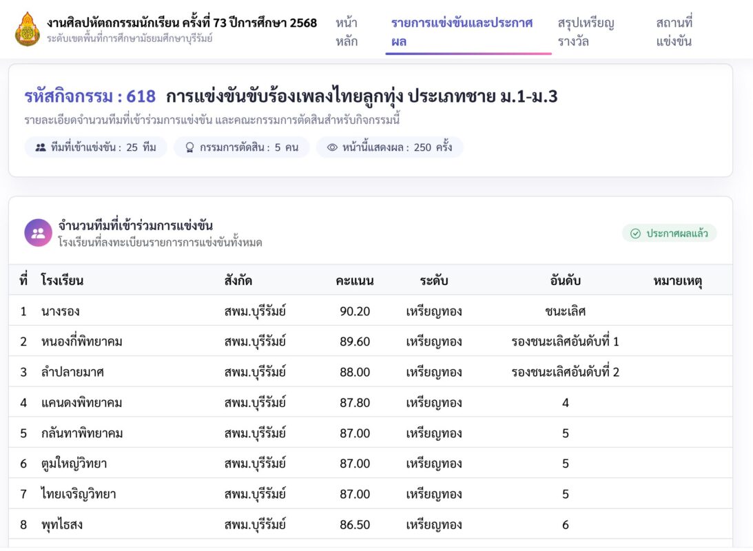 ข่าวสารในโรงเรียน เกียรติประวัติแห่งความภาคภูมิใจ: ความสำเร็จของลูกชาวเหลืองแดงในเวทีศิลปหัตถกรรมนักเรียน Posted on มกราคม 29, 2026มกราคม 30, 2026 by admin 29 ม.ค. ขอแสดงความยินดีกับ เด็กชายวชิรวิทย์ สิงห์วงศ์ ที่ได้รับรางวัล ชนะเลิศ เหรียญทอง การแข่งขันขับร้องเพลงไทยลูกทุ่ง (ประเภทชาย) ระดับชั้น ม.๑–ม.๓ ณ เวทีการแข่งขันศิลปหัตถกรรมนักเรียน ครั้งที่ ๗๓ โรงเรียนนางรองขอขอบพระคุณคณะครูผู้ฝึกสอนและผู้เกี่ยวข้องทุกท่านที่ร่วมบ่มเพาะและสนับสนุนศักยภาพของนักเรียนจนประสบความสำเร็จอย่างสง่างาม admin การรายงานตัวและมอบตัวการรายงานตัวและมอบตัวม.4 ปีการศึกษา 2569 (ม.3 เดิม) ประกาศความเป็นเลิศทางด้านคอมพิวเตอร์: รางวัลเหรียญทอง ประจำปีการศึกษา ๒๕๖๘