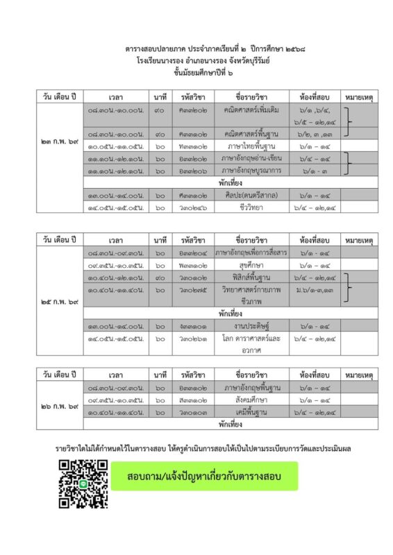 ข่าวสารในโรงเรียน แจ้งกำหนดการสอบปลายภาคเรียนที่ ๒ ปีการศึกษา ๒๕๖๘ โรงเรียนนางรอง Posted on กุมภาพันธ์ 19, 2026 by admin 19 ก.พ. เมื่อเข้าสู่ช่วงโค้งสุดท้ายของปีการศึกษา โรงเรียนนางรอง […] Continue reading →