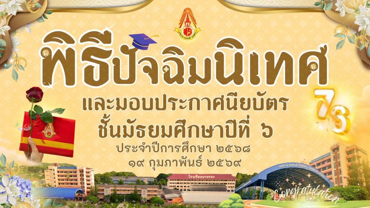 ข่าวสารในโรงเรียน พิธีมอบประกาศนียบัตรและปัจฉิมนิเทศนักเรียนผู้สำเร็จการศึกษาชั้นมัธยมศึกษาปีที่ 6 ประจำปีการศึกษา 2568 Posted on กุมภาพันธ์ 19, 2026กุมภาพันธ์ 20, 2026 by admin 19 ก.พ. โรงเรียนนางรองจัดพิธีอันทรงเกียรติเพื่อมอบประกาศนียบัตรและปัจฉิมนิเทศให้แก่คณะนักเรียนชั้นมัธยมศึกษาปีที่ 6 รุ่นที่ 76 ณ หอประชุมการเวก โดยได้รับเกียรติจาก ดร.นฤภพ ขันทับไทย ผู้อำนวยการโรงเรียนนางรอง เป็นประธานในพิธีและมอบประกาศนียบัตรแด่ผู้สำเร็จการศึกษา ความสำเร็จในครั้งนี้ถือเป็นก้าวสำคัญที่สะท้อนถึงความมุ่งมั่น อุตสาหะ และความพร้อมของเยาวชนที่จะก้าวไปเป็นกำลังสำคัญในการพัฒนาสังคมและประเทศชาติต่อไป https://drive.google.com/drive/folders/1d7UrkdOwj63F904-5HhCo8t8lquz4TGD admin อนุสรณ์แห่งความทรงจำ สายสัมพันธ์เหลืองแดง: งานวันรักวันลา ประจำปีการศึกษา ๒๕๖๘ แจ้งกำหนดการสอบปลายภาคเรียนที่ ๒ ปีการศึกษา ๒๕๖๘ โรงเรียนนางรอง