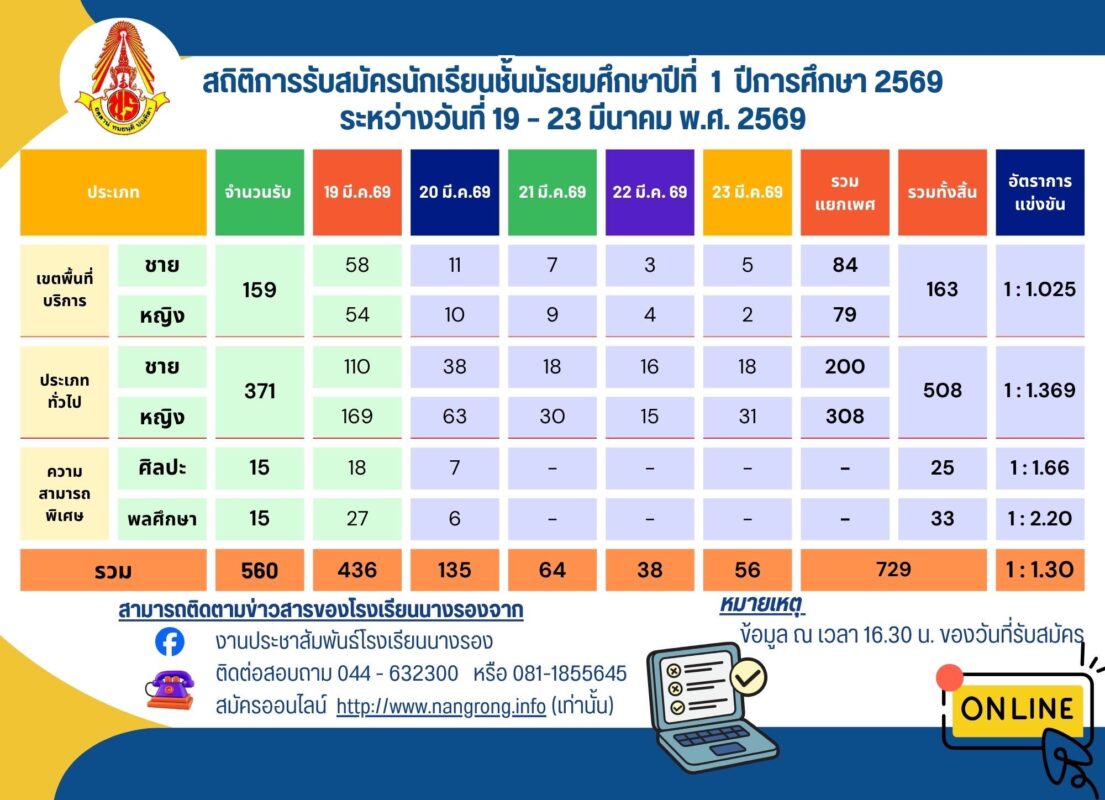 โรงเรียนนางรองขอแจ้งปิดระบบการรับสมัครนักเรียนใหม่ ประจ […]