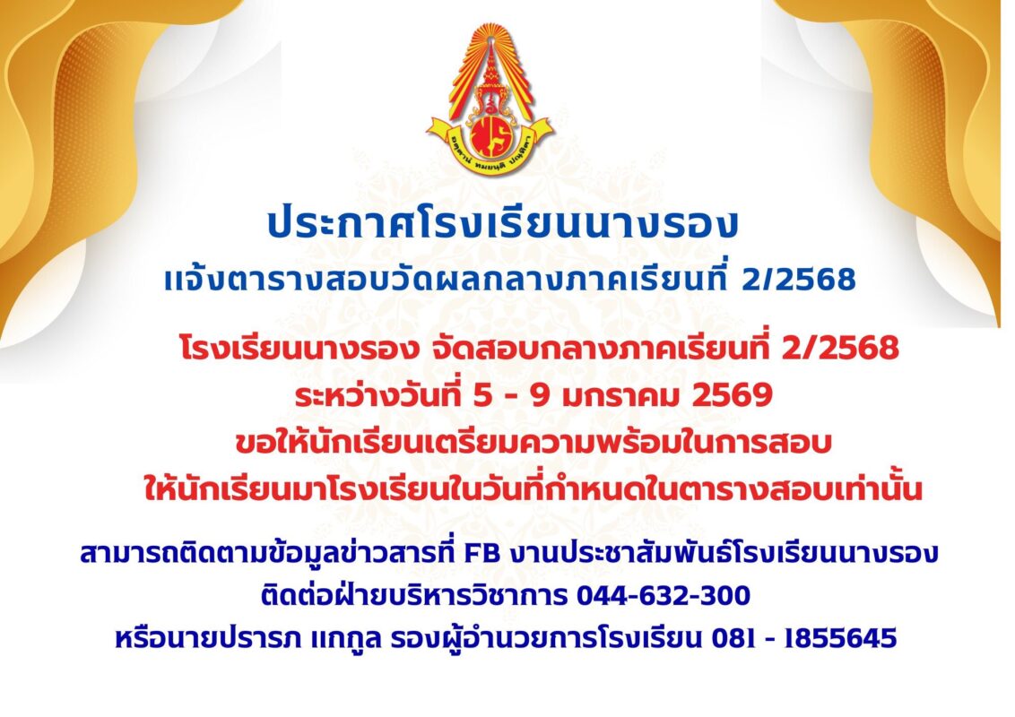 ตารางสอบกลางภาค ภาคเรียนที่ 2 ปีการศึกษา 2568 ของนักเรี […]