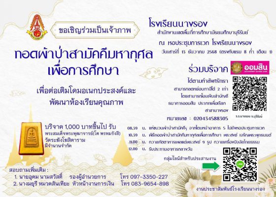 ขอเรียนเชิญทุกท่านร่วมเป็นเจ้าภาพและร่วมทอด ผ้าป่ามหามง [...] [...]